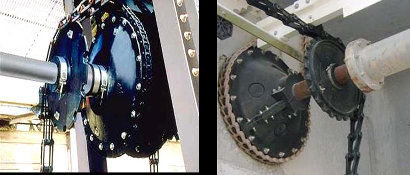 刮泥機(jī)標(biāo)準(zhǔn)鏈輪采用聚亞安酯材料澆鑄制成,中心設(shè)計(jì)有3、4或7英寸(76、102或178毫米)軸孔??蛇x擇的其他鏈輪型號(hào)還包括澆鑄成型的超高分子量聚乙烯鏈輪、加工的超高分子量聚乙烯鏈輪、鑄鐵或聚亞安酯鏈輪轂結(jié)合聚亞安酯或超高分子量聚乙烯鏈輪齒的鏈輪。
